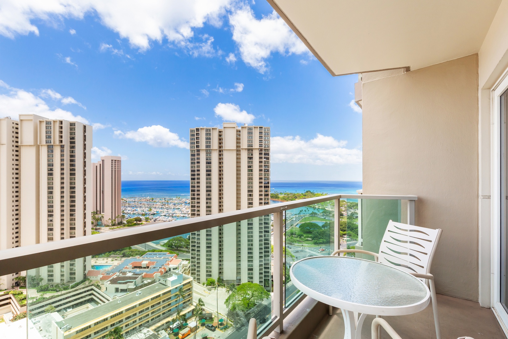 Ala Moana Hotel, unit 2513, on the 25th floor: This hotel room "wows" with great views of Waikiki, Ala Moana Beach Park, and Ala Wai Yacht Harbor, a desirable centralized location, and property amenities to include a newly remodeled pool & lounge deck, gym, and a steam and sauna room! Relax and unwind at the end of your day while sitting on your private lanai overlooking Waikiki and the Pacific Ocean beyond. Sleeps up to 4 guests in 2 full sized beds. Additional perks include air conditioning, free Wi-Fi, flat screen TV, a mini-fridge, microwave, and coffee maker!
