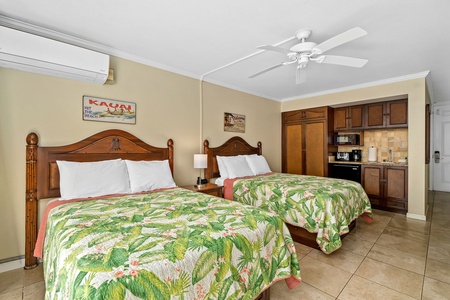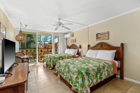 This Kaua‘i beachfront hotel offers charming vintage architecture, complete with modern amenities. It’s nestled in a central location along the historic Royal Coconut Coast, adjacent to the Coconut Marketplace. You’ll find a variety of restaurants, boutiques, and activities here, from hula, lei-making, and ‘ukulele classes to farmer’s markets and live music events. Hidden away on this 6-acre resort is a coffee shop that serves world-sourced brews. In the afternoons, you can soak in the island’s relaxed atmosphere under thatched umbrellas at the pool bar, which features live music twice a week.