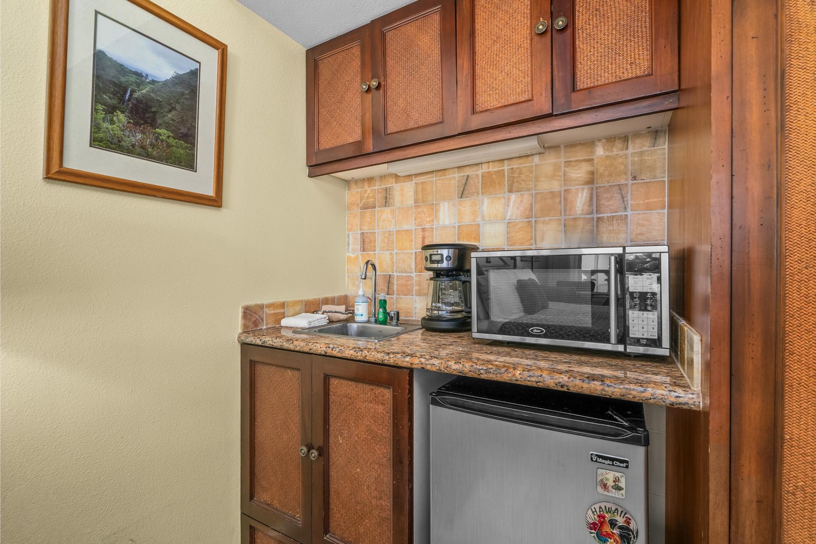 Kitchenette – Equipped with a microwave, sink, mini-fridge, and coffee maker