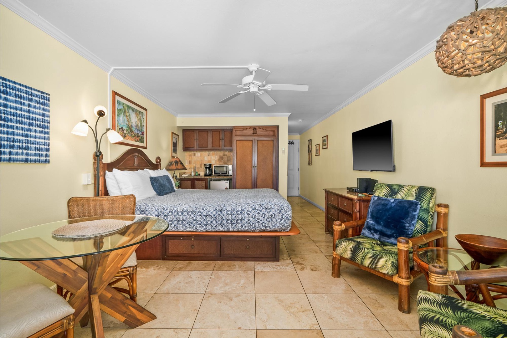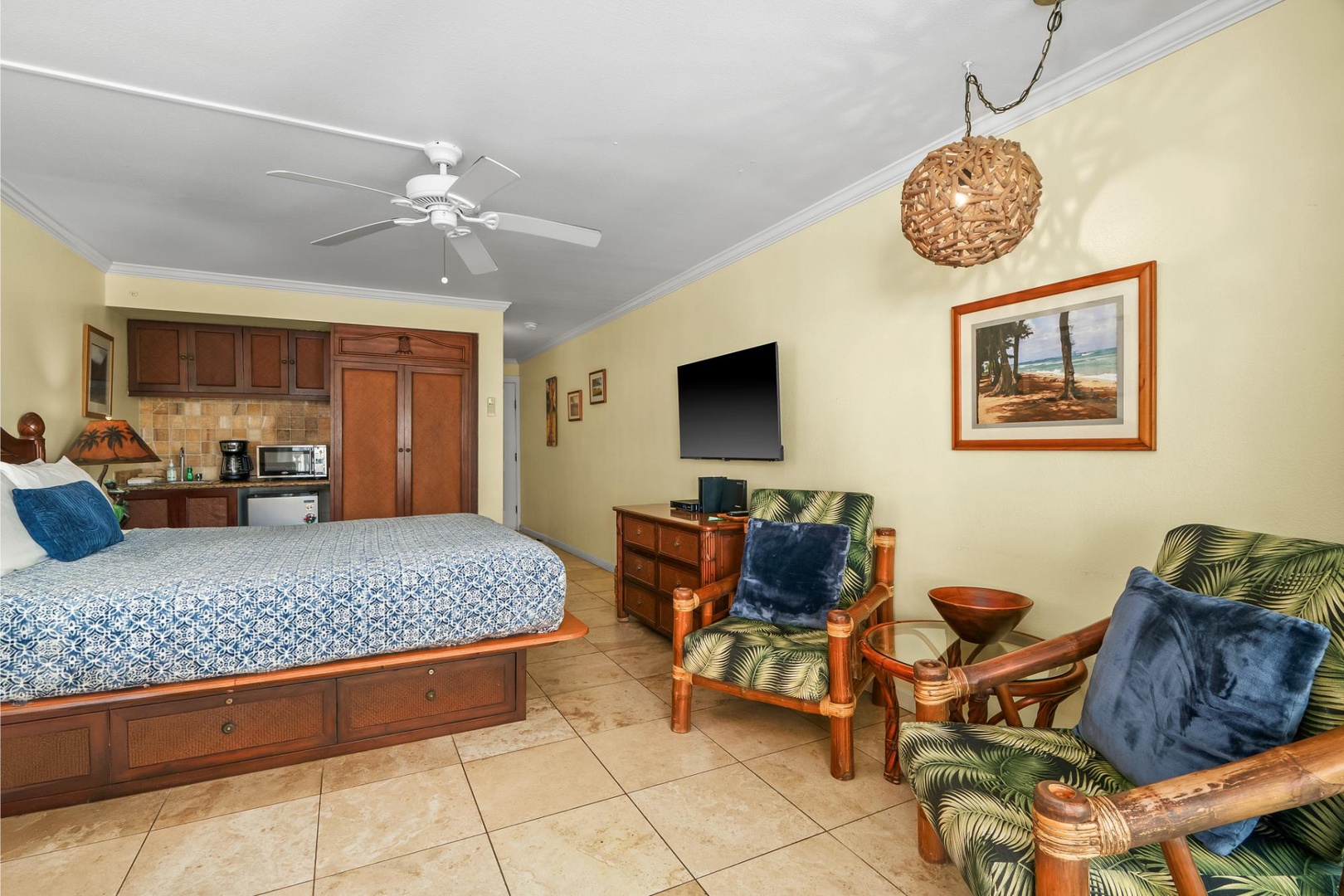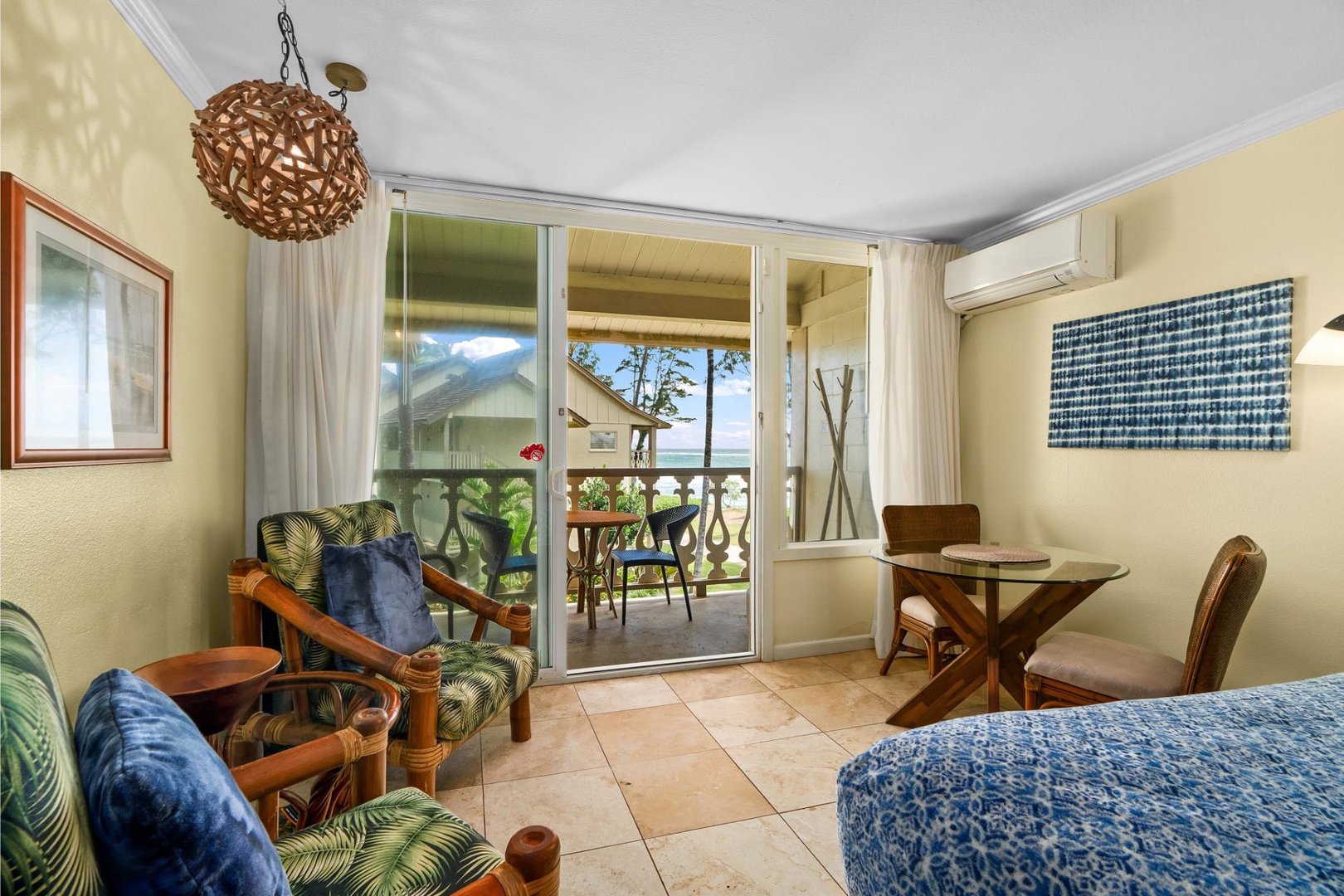 Located in a lush 6.5-acre oceanfront resort, this inviting studio condo is perfect for couples or solo travelers looking for a peaceful retreat with easy access to all Kauai has to offer. Sip your morning coffee on the private lanai as the waves roll in, then head out for island adventures or relax at the resort-style pool and hot tub with a drink from the on-site tiki bar.