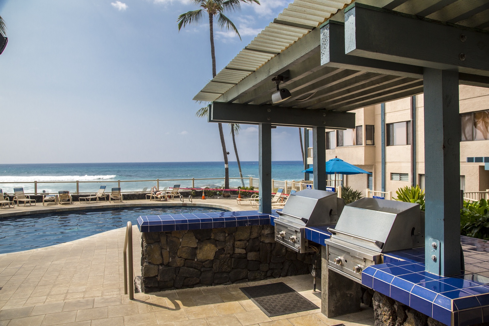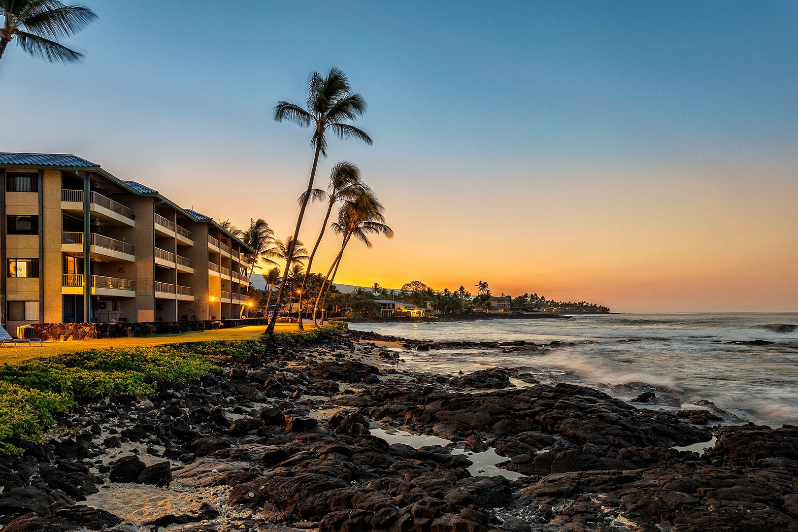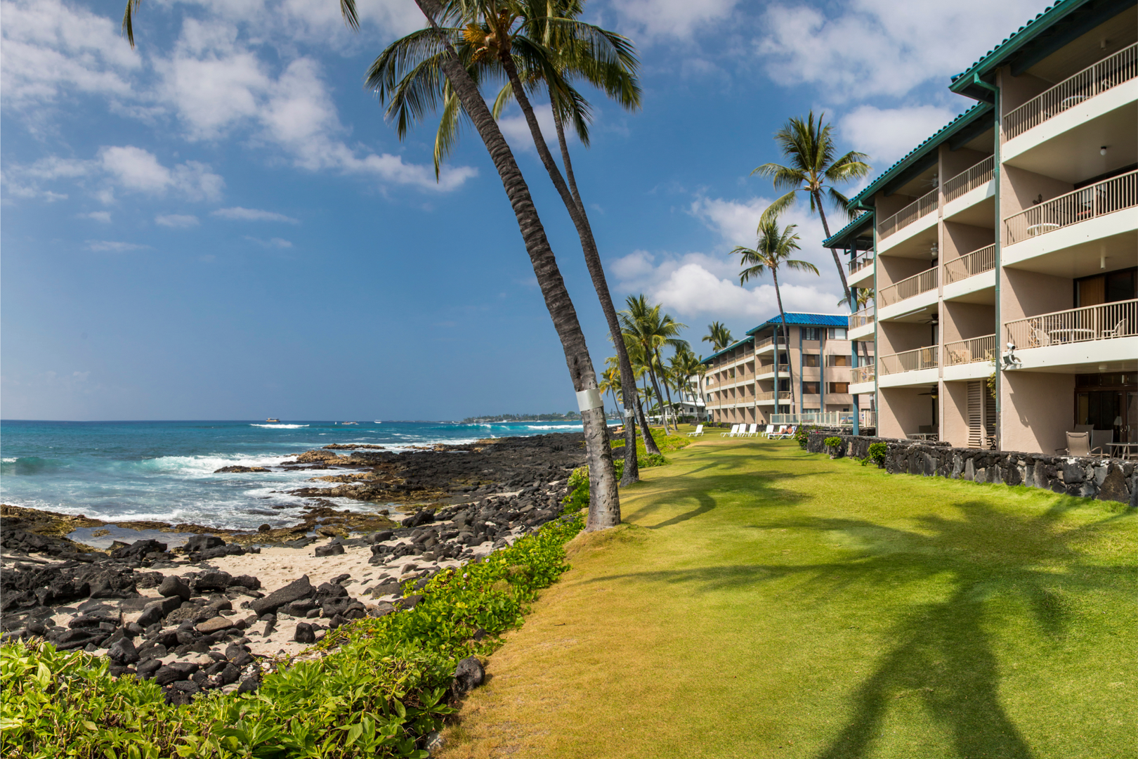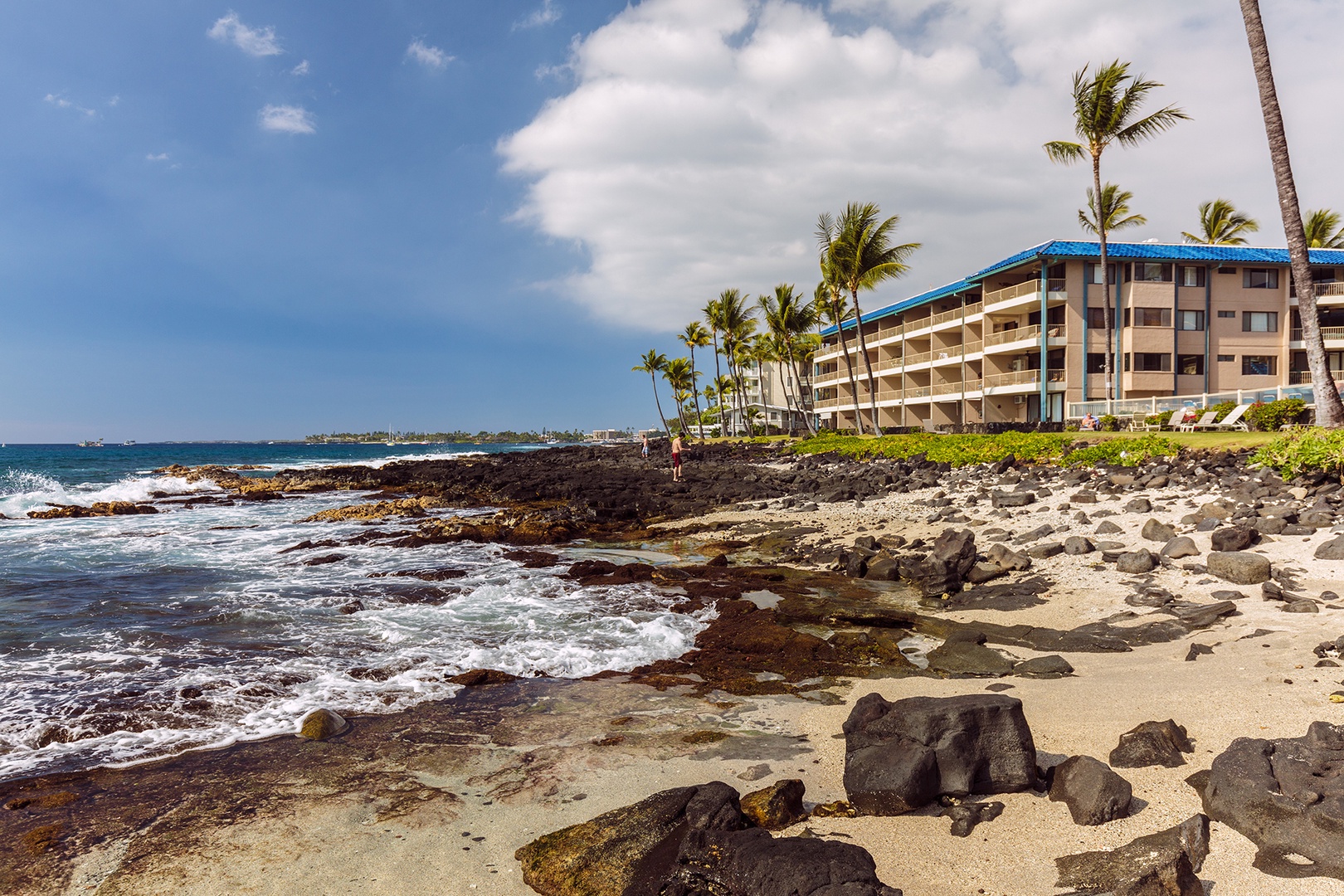 Fringing a sandy beach park and within easy walking distance of historic Kailua-Kona town, Kona Reef Resort welcomes you to sunny days and gorgeous sunsets on Hawaii Island’s west shore. It’s the easy life with an oceanfront swimming pool, jet spa, and poolside cabana with grills.