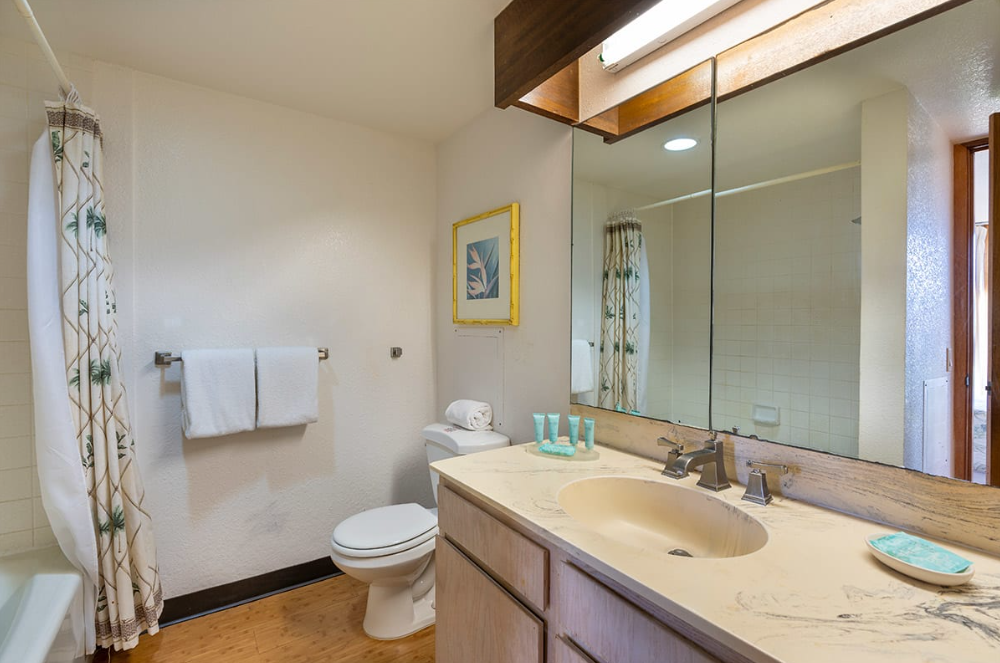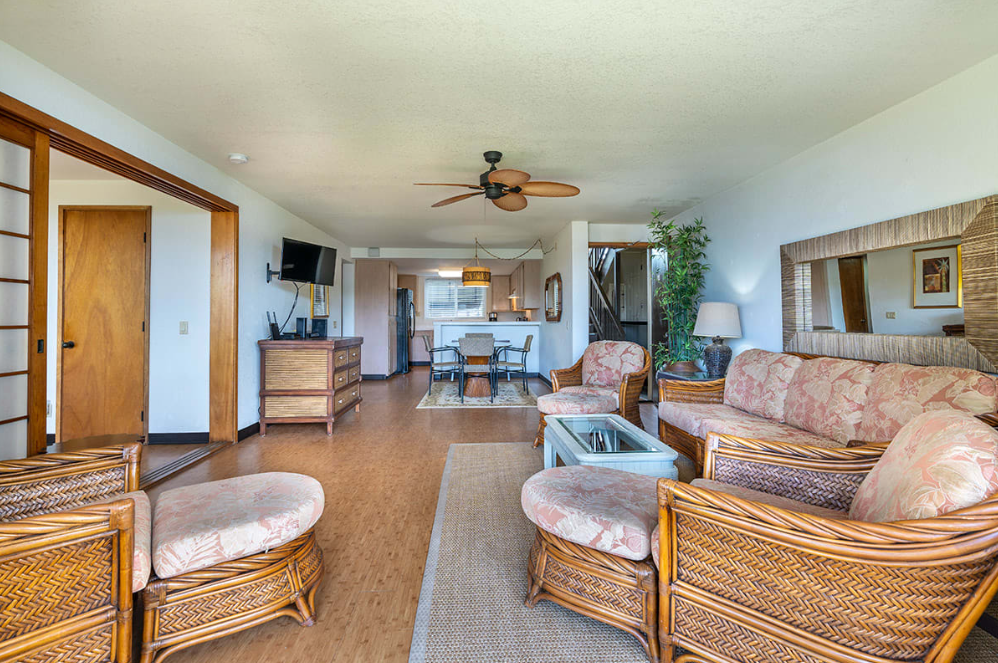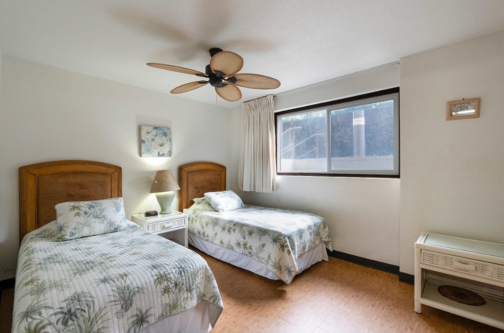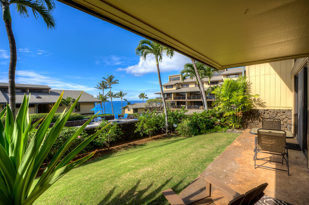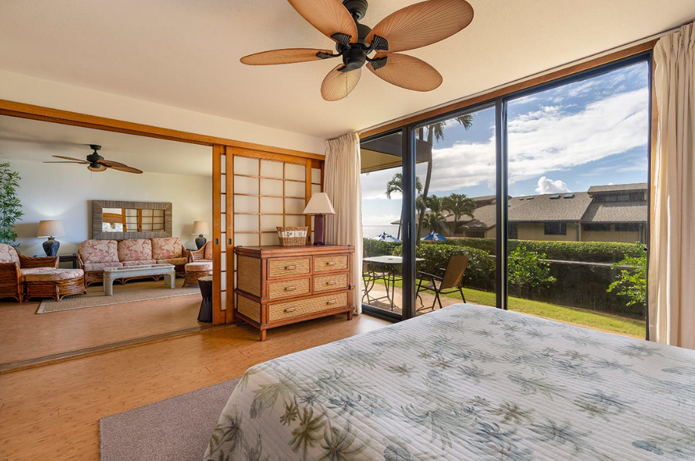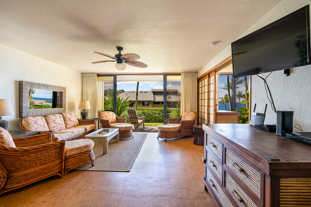 Our ocean view resort offers stunning views from each vacation condo. While we do not have air-conditioning in this unit, we have fans to help circulate the Pacific breeze. Each condo has a sliding glass door that opens onto the lanai, and windows throughout the space to help enhance the cross-breeze throughout the space.