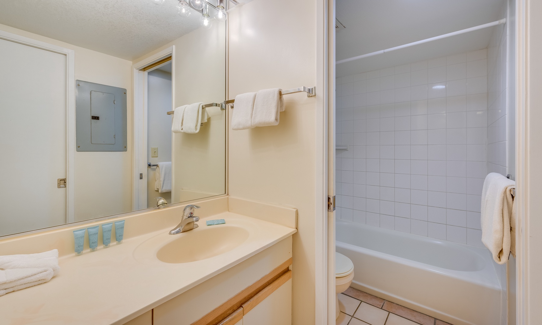 This climate-controlled one-bedroom/one-bathroom suite showcases a charming island aesthetic with a tropical color palette and tropical floral design throughout. For modern conveniences, enjoy complimentary Wi-Fi, flat screen TVs, an in-unit washer/dryer. Enjoy morning coffee or a sunset cocktail from your furnished lanai that stretches across the entire unit.