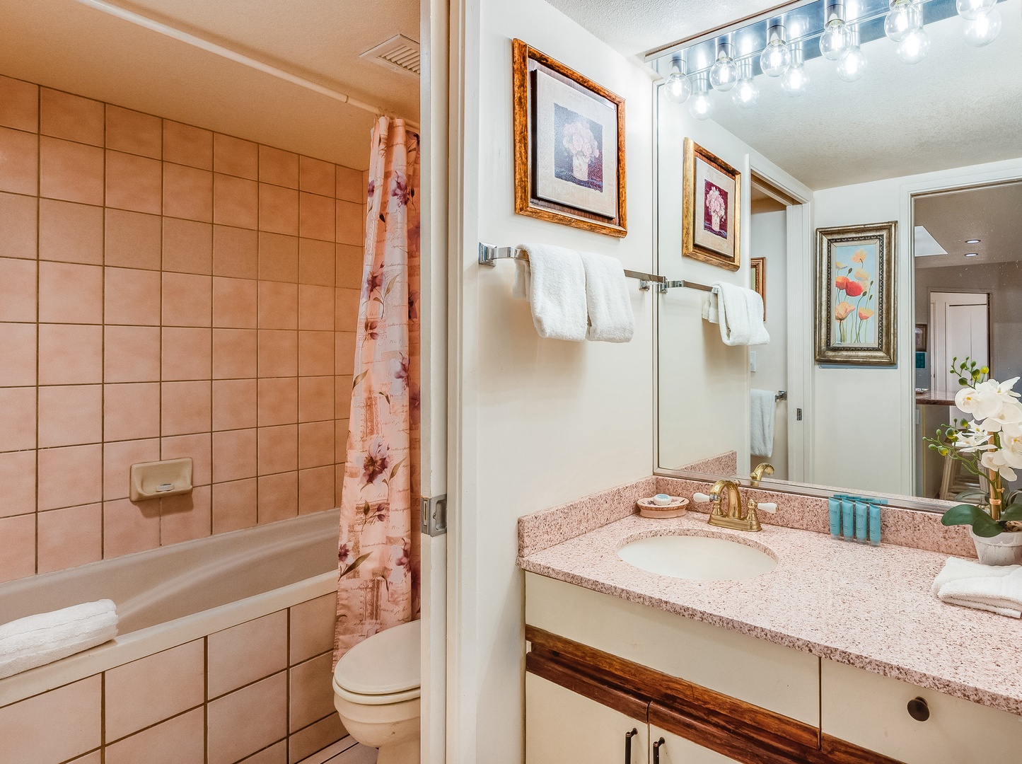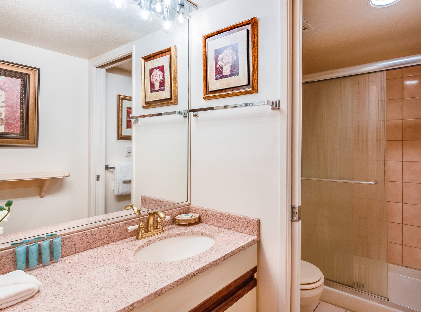 The bedrooms provide a haven of comfort with high quality beds and linens to ensure a restful night’s sleep in the tropics. The master bedroom has a queen-sized bed, a flatscreen television, and lanai access. The second bedroom has two full-sized beds. There is also a queen sofa bed in the living room. Combined T108A and T108B can comfortably sleep up to 8 guests. Both bathrooms have a spa-like design with showers, large mirrors, and optimal lighting with the en suite having a tub and a dual vanity.