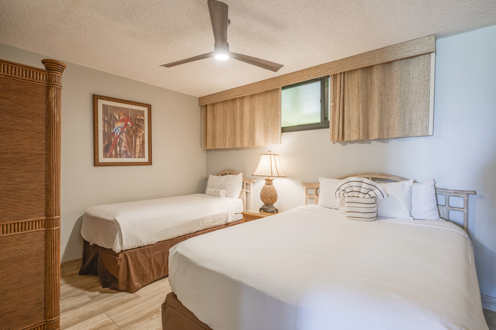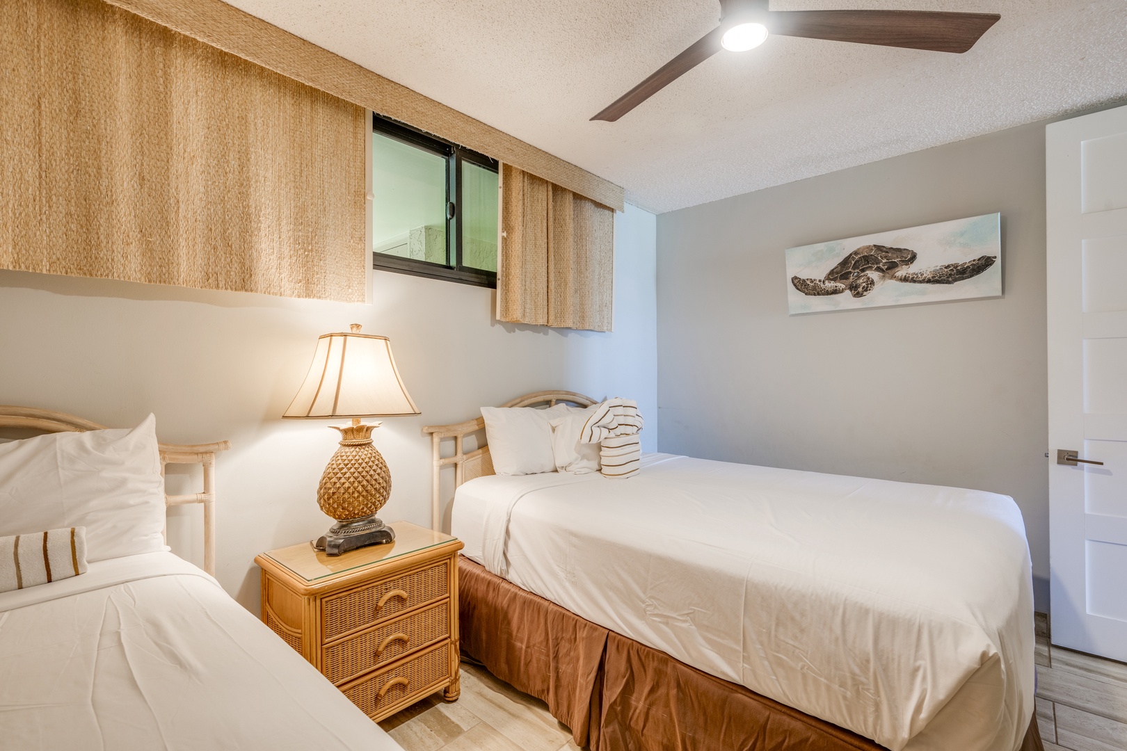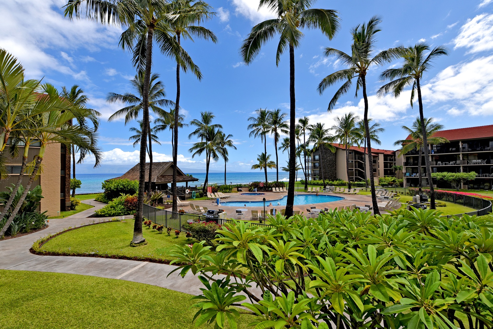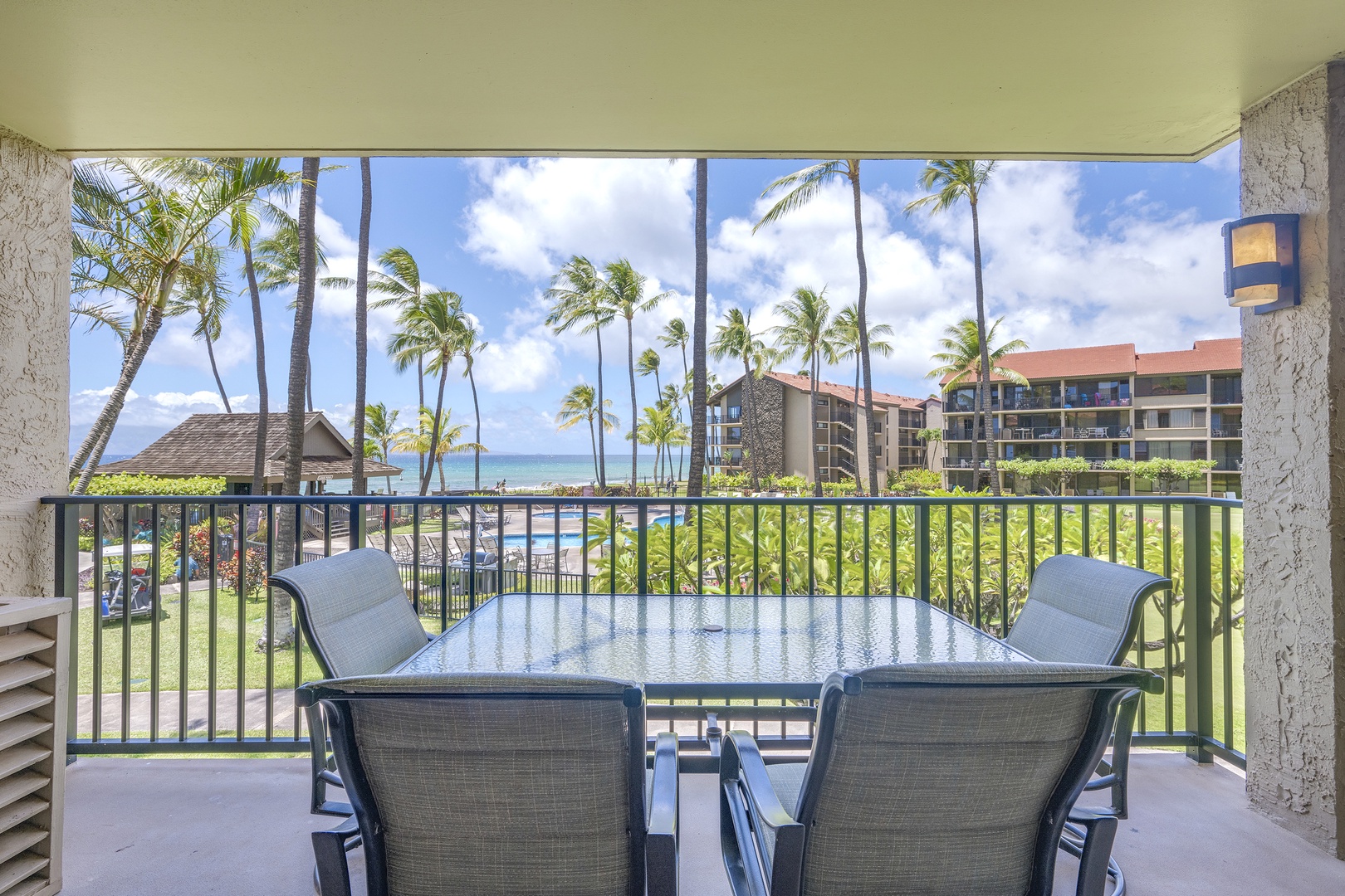 Visit our lovely 2nd floor vacation condo with wonderful ocean views in North Kaanapali. This condo features both bedrooms all on one floor. This completely remodeled unit has all brand new stainless steel appliances, a wine fridge, floor to ceiling lanai doors, a new air conditioning system and new mattresses for the queen beds and twin bed. Upgrades as of May 2021 include a new Italian sofa bed, a new 65 inch TV in the living room and a new microwave over the stove to replace the counter top model. The guest bathroom features a stall shower, no tub. Condo features a full size washer and dryer. Resort features 2 pools, shuffleboard, tennis courts, putting greens and plenty of gas BBQ's in the pool area to grill up the fresh catch of the day.